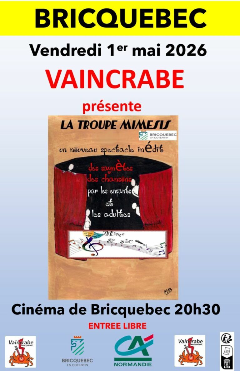 Représentation de la Troupe Mimesis au profit de l’association Vaincrabe 📆Vendredi 1er mai 2026 🕛20h30 📍Salle du Ciné’Bricquebec Le Donjon Entrée Libre